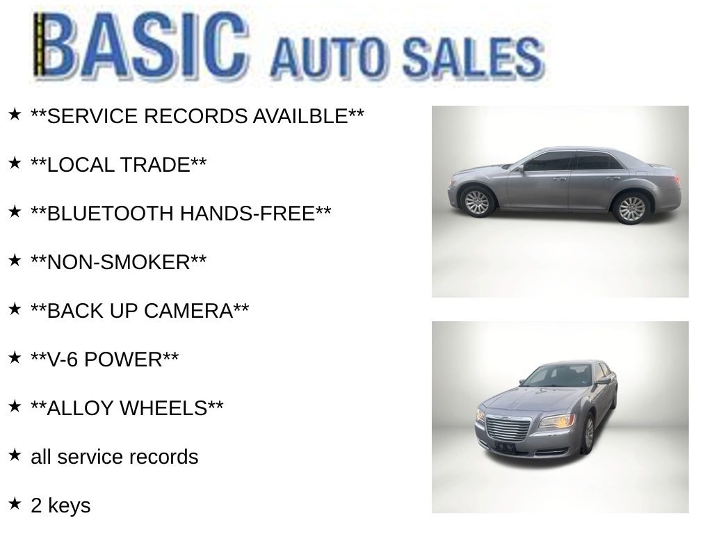 Billet Silver Metallic Clearcoat 2014 Chrysler 300 Base RWD 8-Speed Automatic 3.6L 6-Cylinder SMPI DOHC **SERVICE RECORDS AVAILBLE**, **LOCAL TRADE**, **BLUETOOTH HANDS-FREE**, **NON-SMOKER**, **BACK UP CAMERA**, **V-6 POWER**, **ALLOY WHEELS**, all service records, 2 keys.