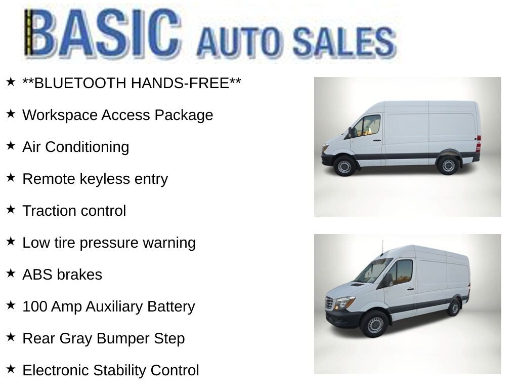 Arctic White 2017 Freightliner Sprinter 2500 Base RWD 5-Speed Automatic 3.0L V6 Turbodiesel **BLUETOOTH HANDS-FREE**, a 100 Amp Auxiliary Battery for those cold mornings, 12V Rear Compartment Power Outlet, ABS brakes, Air Conditioning, Assist Handle, B-Pillar, Ceiling Lights In Rear Compartment, LED, Cutoff Relay For Additional Battery, Electronic Stability Control, Illuminated entry, Instrument Cluster w/Pixel-Matrix Display, Left Rear Door Assist Handle, Low tire pressure warning, Rear Gray Bumper Step, Remote keyless entry, Right Rear Door Assist Handles, Traction control, Workspace Access Package.