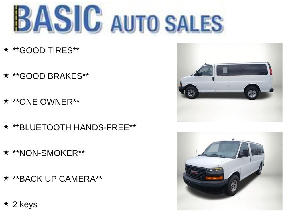 Summit White 2019 GMC Savana 2500 LS RWD 8-Speed Automatic with Overdrive 4.3L V6 **GOOD TIRES**, **GOOD BRAKES**, **ONE OWNER**, **BLUETOOTH HANDS-FREE**, **NON-SMOKER**, **BACK UP CAMERA**, 2 keys.