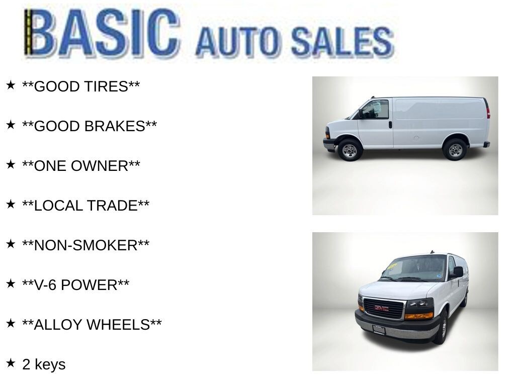 Summit White 2024 GMC Savana 2500 Work Van RWD 8-Speed Automatic with Overdrive 4.3L V6 **GOOD TIRES**, **GOOD BRAKES**, **ONE OWNER**, **LOCAL TRADE**, **NON-SMOKER**, **V-6 POWER**, **ALLOY WHEELS**, 2 keys.