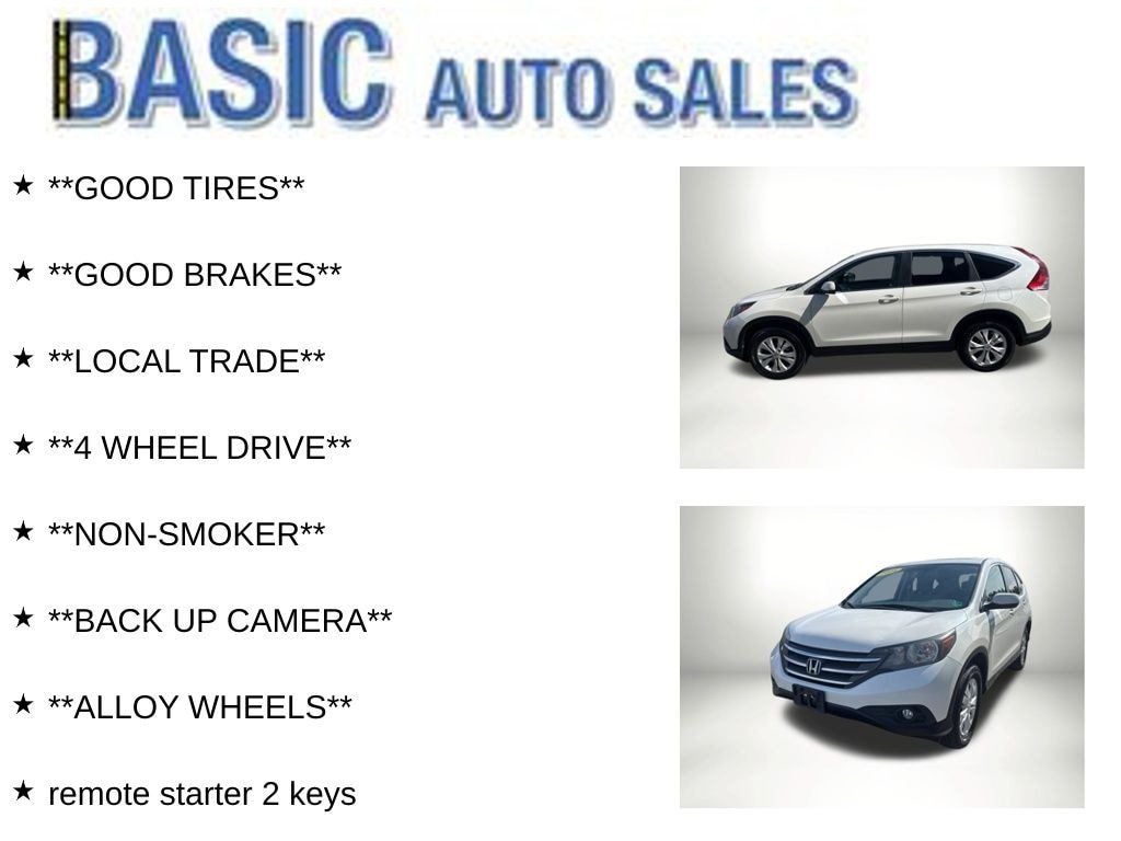 Diamond White Pearl 2014 Honda CR-V EX AWD 5-Speed Automatic 2.4L I4 DOHC 16V i-VTEC **GOOD TIRES**, **GOOD BRAKES**, **LOCAL TRADE**, **4 WHEEL DRIVE**, **NON-SMOKER**, **BACK UP CAMERA**, **ALLOY WHEELS**, remote starter 2 keys.