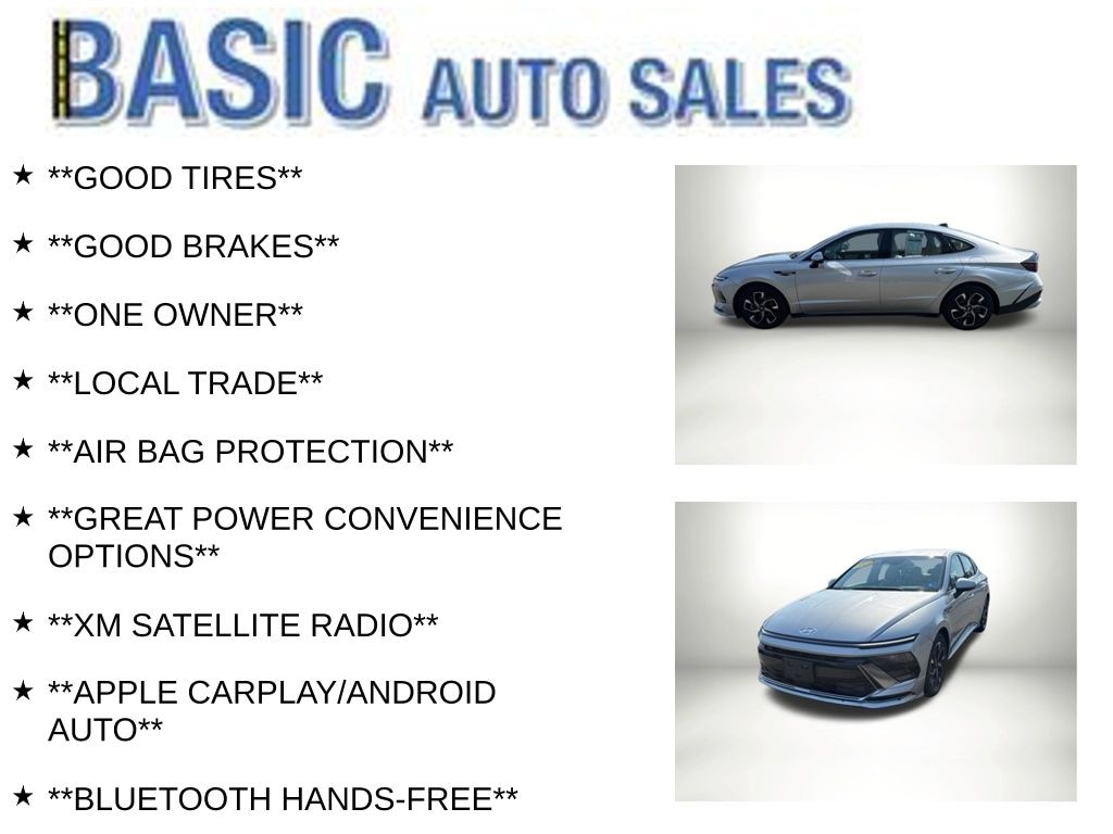 Aero Silver 2025 Hyundai Sonata SEL AWD 8-Speed Automatic I4 **GOOD TIRES**, **GOOD BRAKES**, **ONE OWNER**, **LOCAL TRADE**, **AIR BAG PROTECTION**, **GREAT POWER CONVENIENCE OPTIONS**, **XM SATELLITE RADIO**, **APPLE CARPLAY/ANDROID AUTO**, **BLUETOOTH HANDS-FREE**, **ALL WHEEL DRIVE**, **NON-SMOKER**, **LOADED WITH SAFETY FEATURES**, **BLIND SPOT MONITOR SYSTEM**, **LANE KEEP ASSIST**, **LANE DEPARTURE WARNING**, **FRONT COLLISION WARNING**, **BACK UP CAMERA**, **ALLOY WHEELS**, **POWER DRIVERS SEAT**, SEL AWD 2 KEYS.