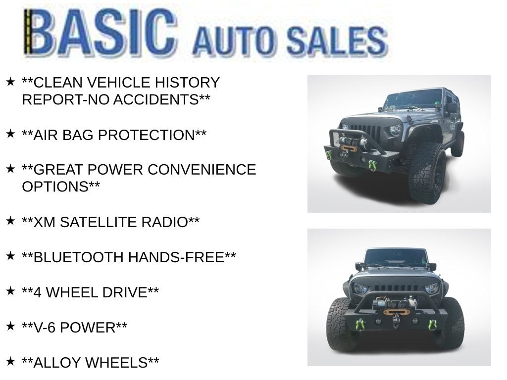 Billet Silver Metallic Clearcoat 2017 Jeep Wrangler Unlimited Sport 4WD 5-Speed Automatic 3.6L V6 24V VVT **CLEAN VEHICLE HISTORY REPORT-NO ACCIDENTS**, **AIR BAG PROTECTION**, **GREAT POWER CONVENIENCE OPTIONS**, **XM SATELLITE RADIO**, **BLUETOOTH HANDS-FREE**, **4 WHEEL DRIVE**, **V-6 POWER**, **ALLOY WHEELS**.