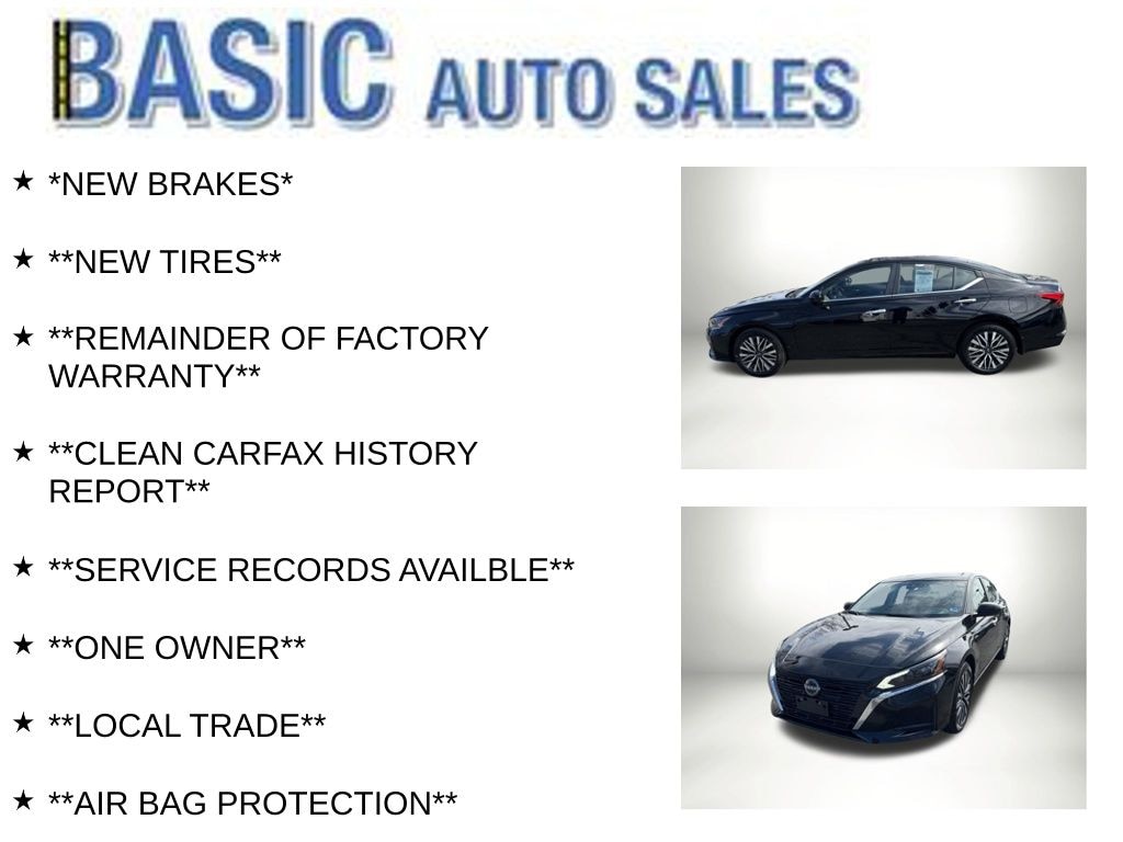 Super Black Clearcoat 2024 Nissan Altima 2.5 SV AWD CVT with Xtronic 2.5L 4-Cylinder DOHC 16V *NEW BRAKES*, **NEW TIRES**, **REMAINDER OF FACTORY WARRANTY**, **CLEAN CARFAX HISTORY REPORT**, **SERVICE RECORDS AVAILBLE**, **ONE OWNER**, **LOCAL TRADE**, **AIR BAG PROTECTION**, **GREAT POWER CONVENIENCE OPTIONS**, **APPLE CARPLAY/ANDROID AUTO**, **BLUETOOTH HANDS-FREE**, **ALL WHEEL DRIVE**, **NON-SMOKER**, **REMOTE START**, **LOADED WITH SAFETY FEATURES**, **BLIND SPOT MONITOR SYSTEM**, **LANE KEEP ASSIST**, **LANE DEPARTURE WARNING**, **FRONT COLLISION WARNING**, **BACK UP CAMERA**, PREMIUM PACKAGE, 2 keys, 2-Way Driver Power Lumbar Support, Active Ride Control (ARC), Body-Color Outside Mirrors, Center Console Side Panel Stitched/Padded, Driver & Passenger Sun Visors Light, Electronic Parking Brake w/Auto-Hold, Exhaust Finishers, Heated Front Seats, Intelligent Cruise Control w/Full Spd Range & Hold, Intelligent Lane Intervention (I-LI), Intelligent Trace Control (I-TC), Leather Shift Knob, NissanConnect, Premium Interior Finishers, ProPILOT Assist, Single Panel Moonroof, Steering Assist, SV Premium Package, Traffic Sign Recognition, Wrapped & Stitched Steering Wheel.